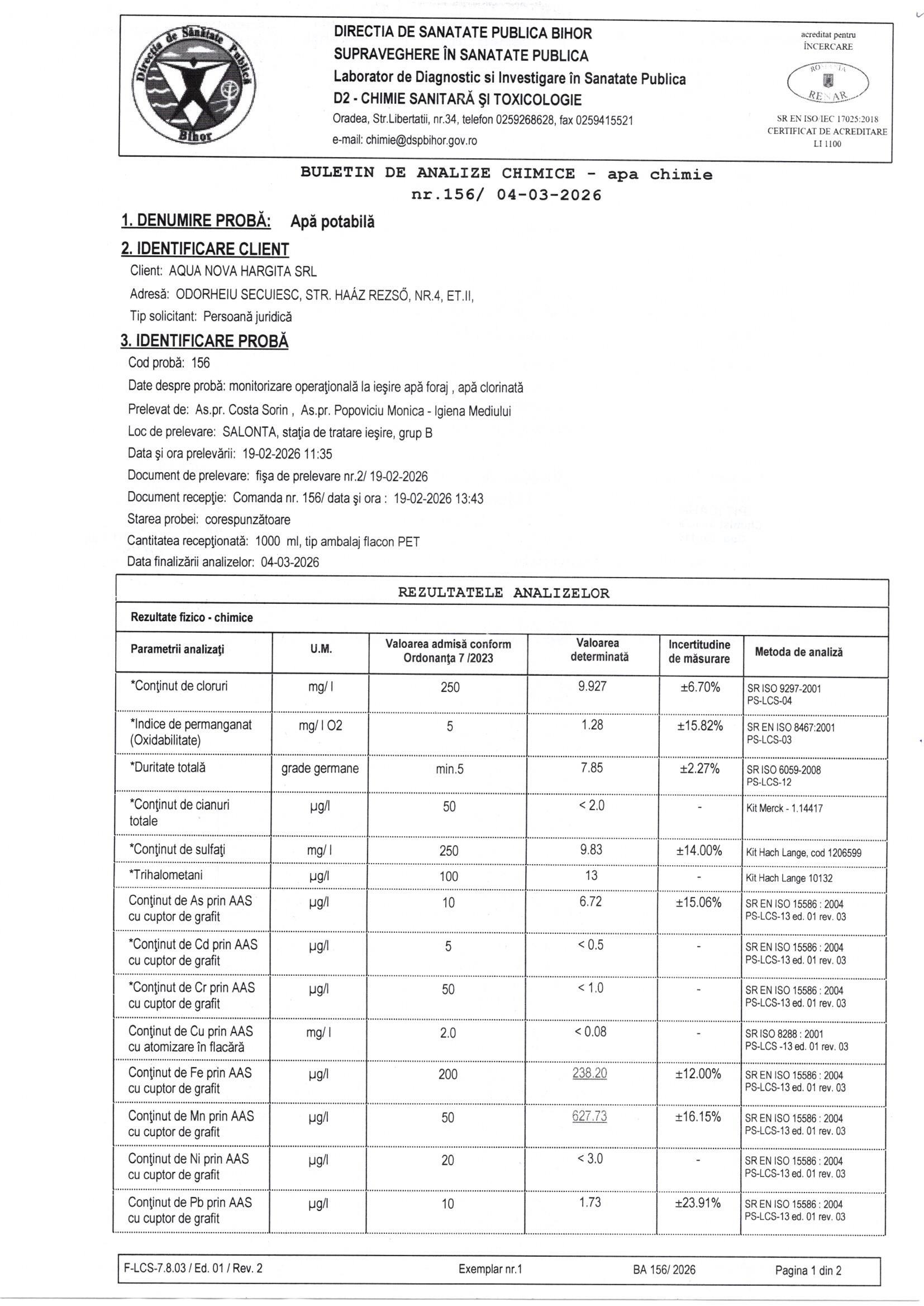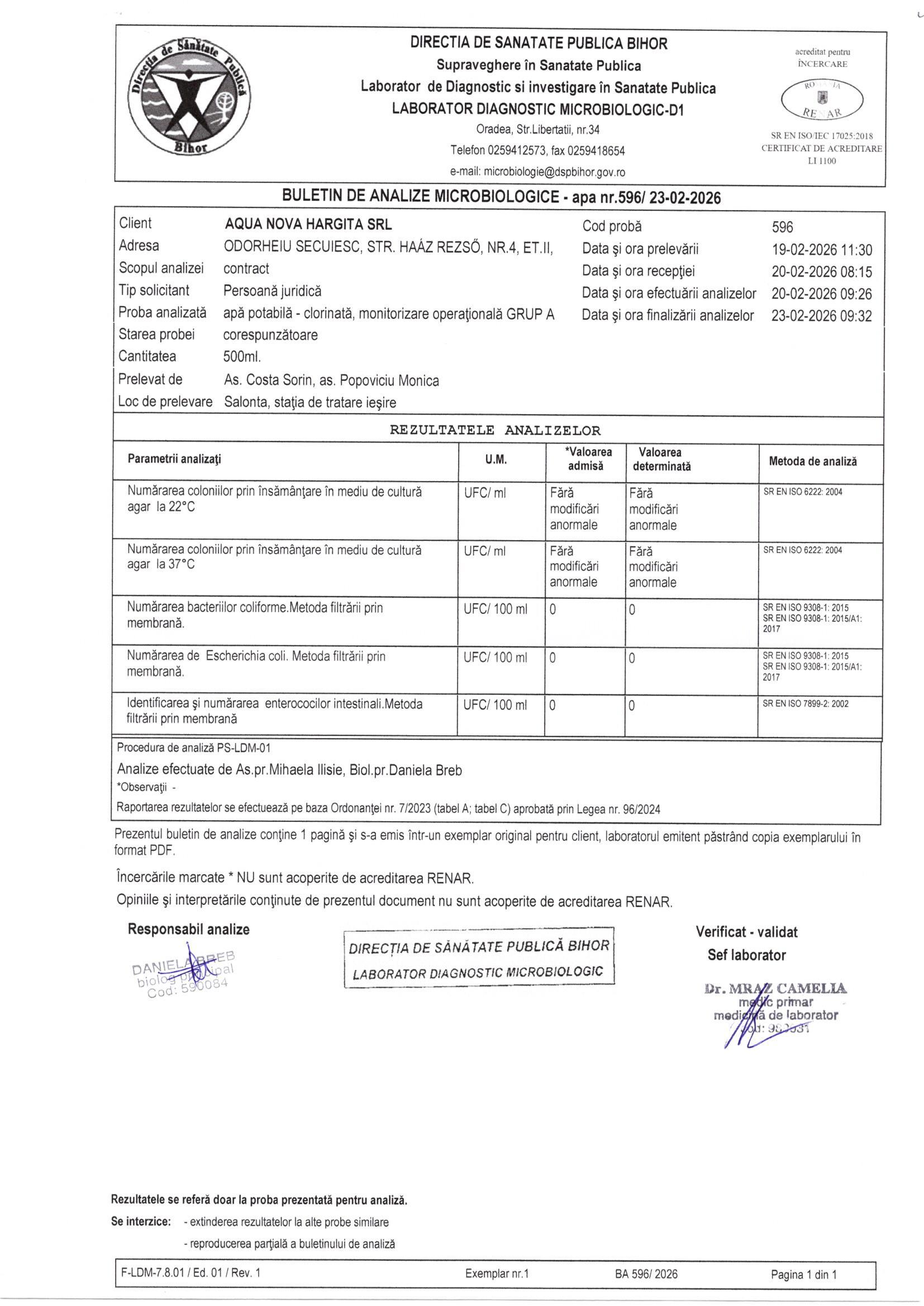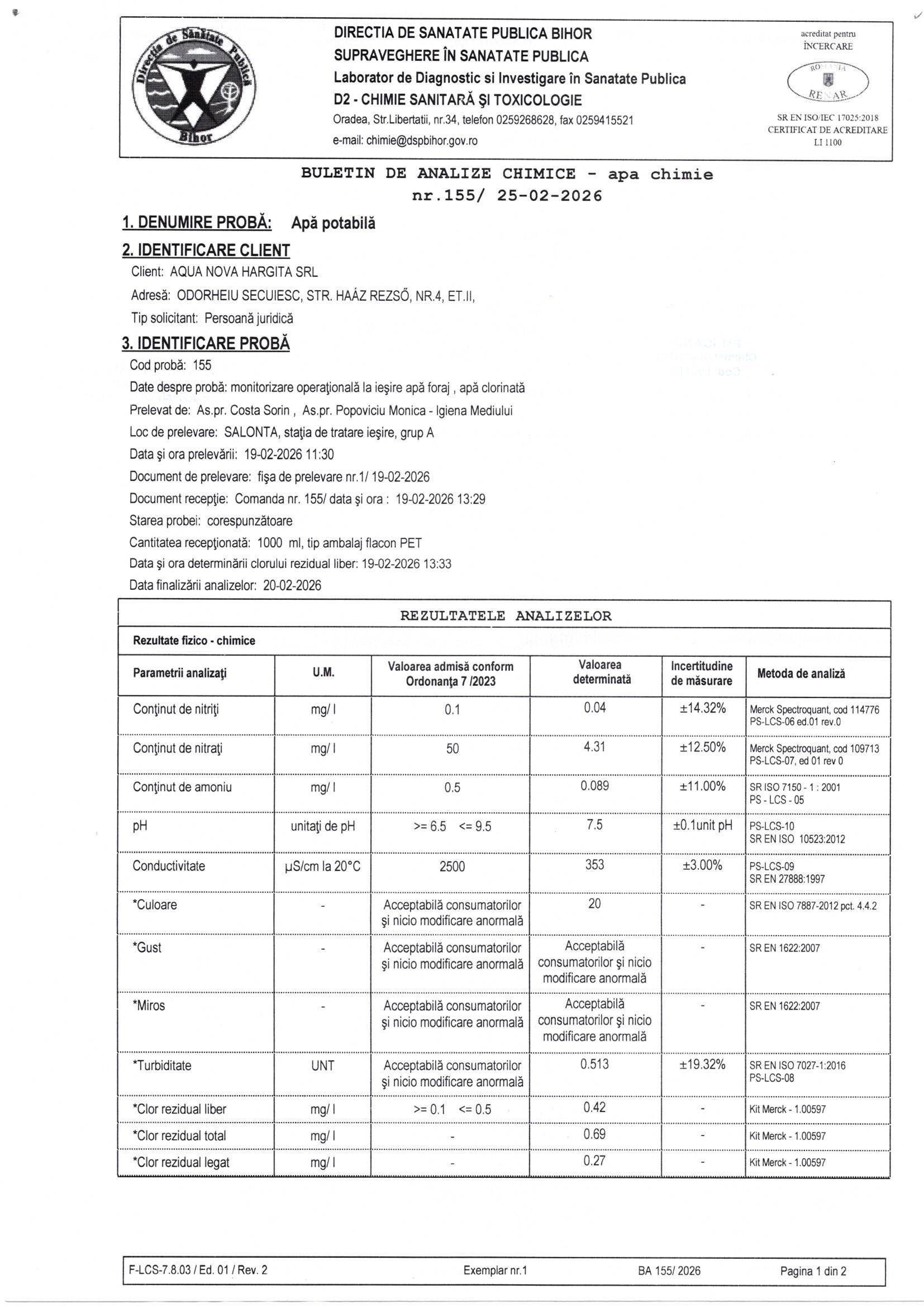 Az ivóvíz minőségét a termelő és a szolgáltató is köteles ellenőrizni a 974/2004-es Kormányhatározatot módosító és kiegészítő 342/2013-as Kormányhatározat szerint. Ennek alapján a megyei Közegészségügyi Igazgatóság jóváhagyásával készült el a kontroll és audit vizsgálatokat tartalmazó ivóvízminőséget kémiai összetétel és mikrobiológiai szempontból ellenőrző éves program. Az ivóvízminőségi ellenőrző vizsgálatok cégünk, illetve a megyei Közegészségügyi Igazgatóság laboratóriumaiban készülnek.